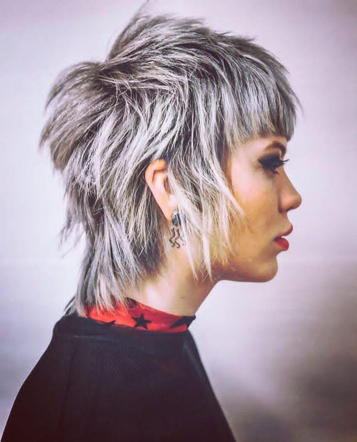 Стрижка «Маллет» без челки и краткая по длине — это один из самых популярных вариантов этой прически. В этом стиле волосы обычно стригутся внизу коротко, при этом оставляются достаточно длинными сверху, чтобы можно было создавать объем и форму «молотка».