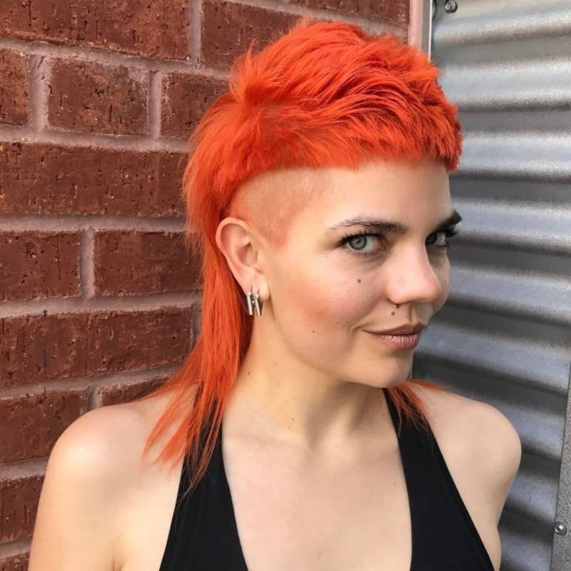 Самый экстраординарный вариант маллета, только самые смелые девушки готовы решиться на это. Но выглядит просто замечательно, уникально и необычно. Такая прическа точно способна выделить вас среди серой массы. Отлично сочетается с разного рода пирсингом.