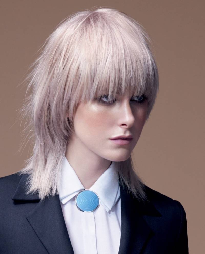 Средняя длина волос является самой популярной для девушек, так как наиболее удобна. Маллет, конечно же, подойдет для такой длины, частым выбором, который может подчеркнуть особенности вашего лица в этом случае является супер короткая челка.