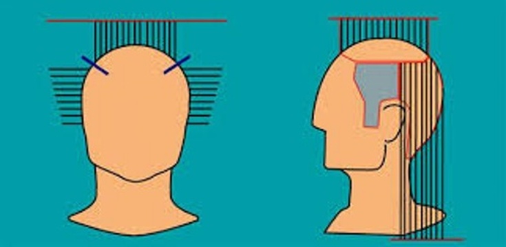 Важно строго придерживаться прямой линии. Далее корректируется зона висков