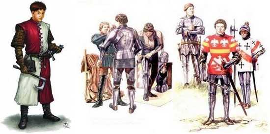 - 2. Как следует из названия, его носили слуги рыцаря: пажи и оруженосцы.