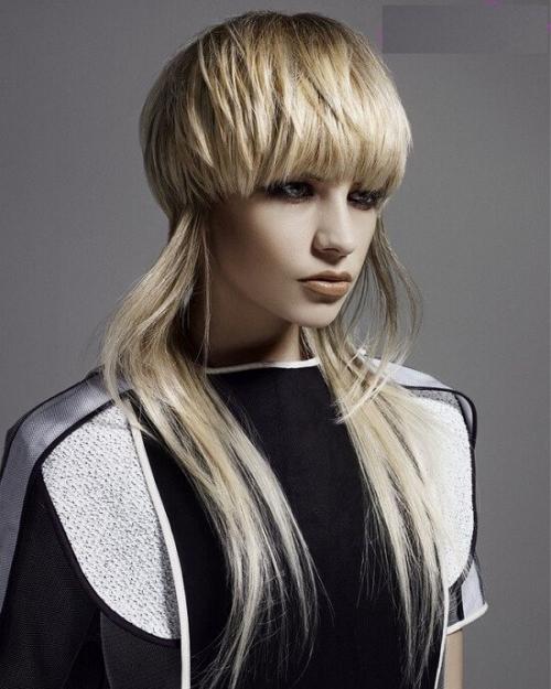 Важно лишь, чтобы эта длина имела очень плавный переход. Макушка остается такой же, как в классическом исполнении, а вот с челкой можно экспериментировать. Асимметрия может также выражаться в резком переходе длины волос лишь с одной стороны