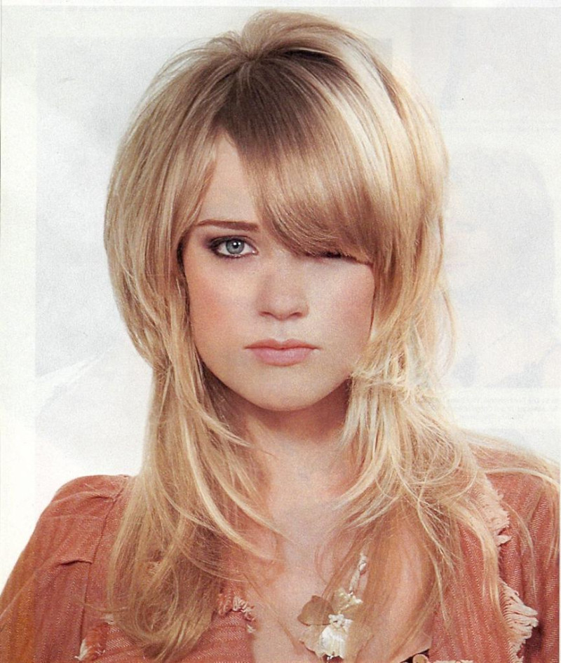 - Длинная густая челка поможет спрятать высокий лоб и исправит внешне слишком вытянутое лицо.