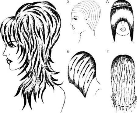 - , а волосы в области висков – по одной линии, создавая эффект шапочки, прикрывающей уши, а затем осуществляется резкий переход в длинные волосы;