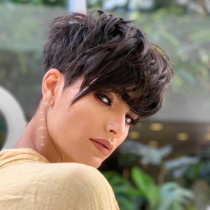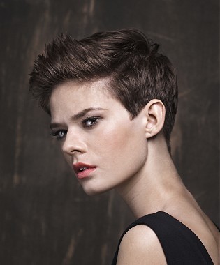Челку и зону темени в этой модели делают асимметричными, придавая им немалую длину. В области затылка и висков волосы укорачиваются. Небрежная объемная стрижка одновременно обладает мужской практичностью и женским изяществом.