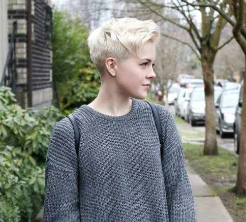 Такой вариант стрижки осуществляется с помощью бритвы, и обязательным атрибутом является сильная и очень качественная филировка, которая придает прическе креативный и стильный рваный вид. Благодаря такому способу стрижки, волосы смотрятся хаотично и небрежно. Короткие прически томбой с рваными прядями уложить не так просто, но если потренироваться, то очень быстро вы научитесь справляться с этим в считанные минуты.