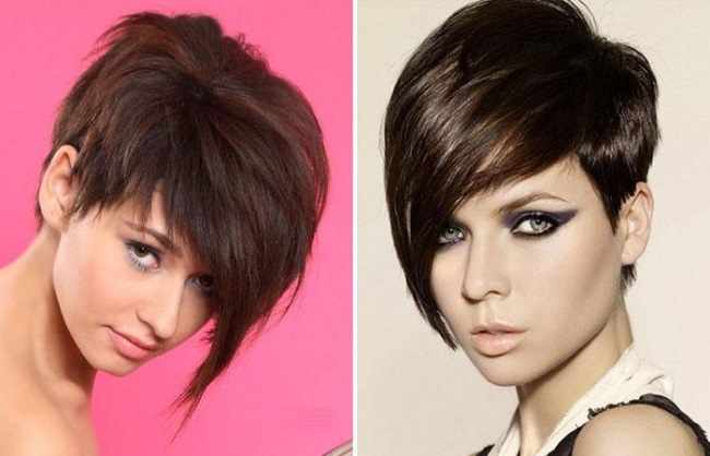 Томбой с асимметрией смотрится очень экстравагантно. Он прекрасно подходит взрослым женщинам и более молодым особам, наделенным природой утонченными чертами. Также рассматриваемый вариант позволяет скорректировать недостатки (сгладить острые скулы или визуально вытянуть овал).