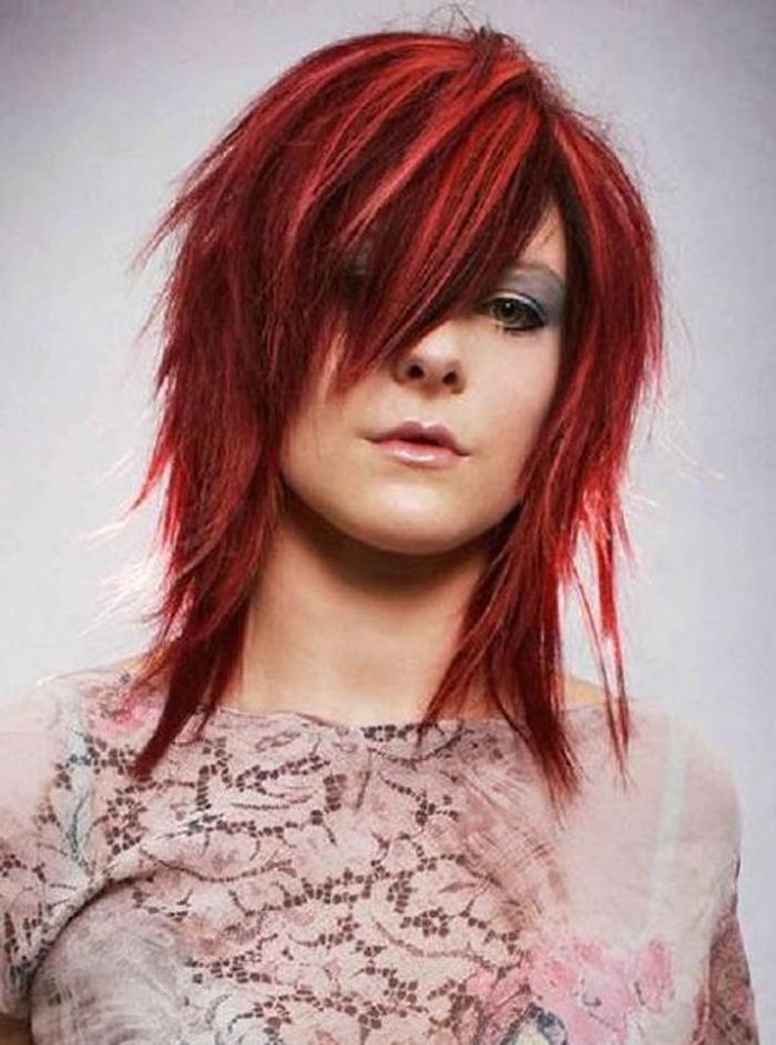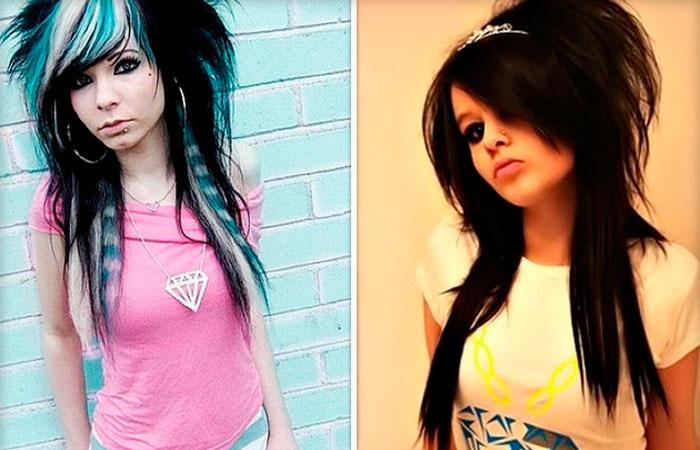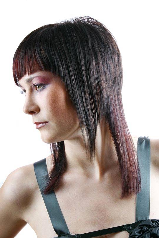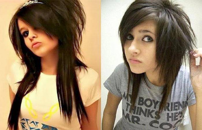 «Треш» для длинных волос. Такая «бунтарская» прическа делается на основе «каскада». Девушкам не стоит беспокоиться о длине волос, она остается прежней. На макушке мастер оставляет «капюшон», чтобы прическа выглядела объемнее. Кроме того, ее необходимо немного расчесать. Челка стрижется по диагонали, а пряди близко к лицу оставляются короче, чтобы они могли дополнять челку при укладке.
