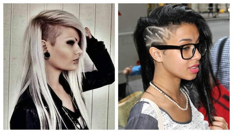 В последнее время многие девушки с длинными волосами выбривают экстраординарные стрижки. Например, с одной стороны выбривают висок. Получается своеобразный трансформер. Причем на выбритом виске может быть изображен узор, символ или орнамент. Вариант стрижки с выстригом выглядит весьма дерзко и вызывающе.