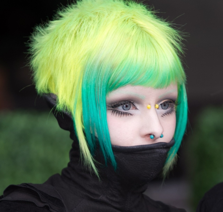 Аксессуары, как в волосах, так и на теле дополнят образ и сделают его еще более шокирующим. Бантики и заколки, накладные волосы, бритые виски, пирсинг, тату, вызывающий макияж и одежда – нисколько не испортят образ, но и сделают его еще более удивительным.