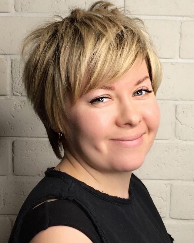 Стрижка пикси с челкой на бок для круглого лица, фото