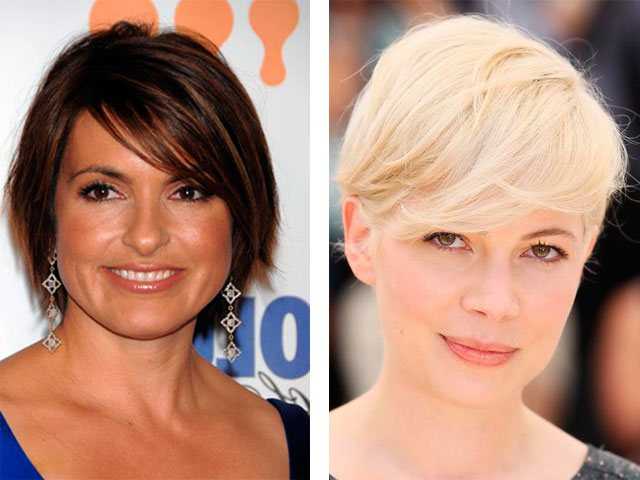 Удлиненные стрижки пикси с челкой на бок для круглого лица, фото