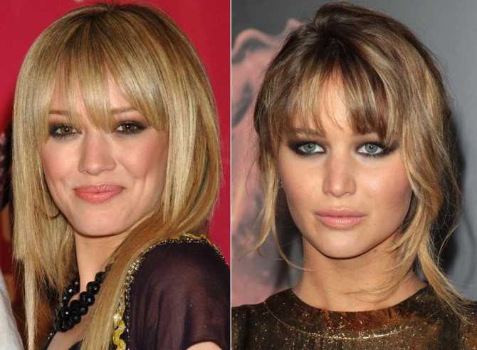 При выборе челки данной формы крайне важно соблюдение правильной длины, один лишний сантиметр способен нарушить пропорции. Чрезмерно длинные варианты укорачивают лицо, смещают акцент с глаз на щеки. Оптимальное решение – прямая челка длиной не ниже середины лба или же до бровей в комбинации с прямыми длинными волосами