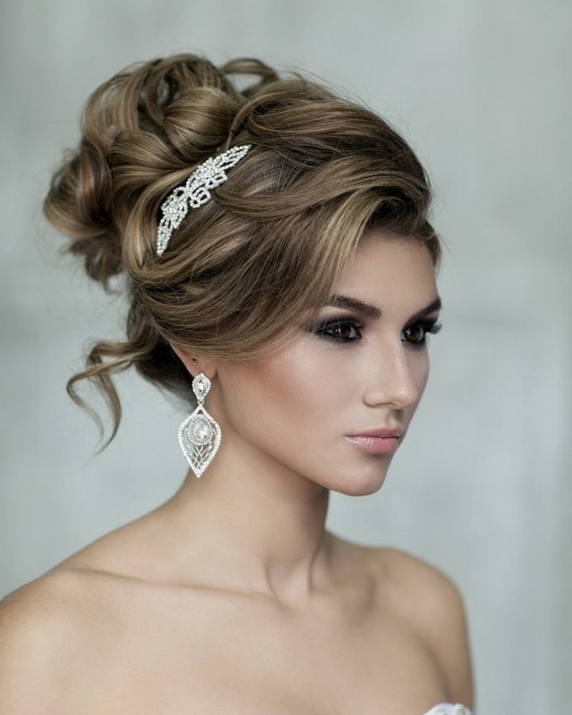 Собранные в пучок локоны и выбившейся из общей массы локон или выполненная волна на одну сторону, которую выдерживают для фиксации в зажиме несколько минут перед выходом, подойдет для зрелой и степенной дамы. А если такую прическу применить для более юной особы, то нужно дополнить ее неброской диадемой.