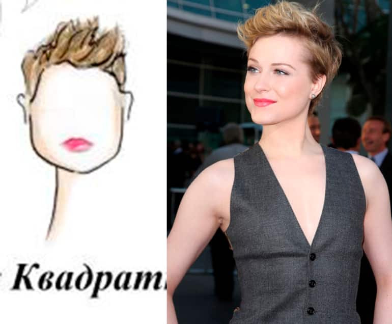 Выполнение пышности позволяет уменьшить вытянутость. Короткие стрижки асимметрия не должны открывать уши. В дополнительном объёме на макушке также нет необходимости. Лучше сделать акцент на разнообразных пышных укладках, которые смягчают углы лба, и завитках, скрадывающих резко выступающие скулы. Короткие стрижки с короткой челкой подчеркнут особенности прямоугольной формы лица.