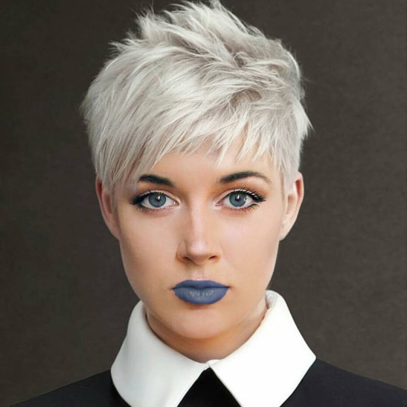 Пикси дополняют ультракороткой челкой, оставляющей лицо практически открытым или напротив, удлиненной челкой, которую при необходимости можно зачесать назад и зафиксировать стайлинговыми средствами.
