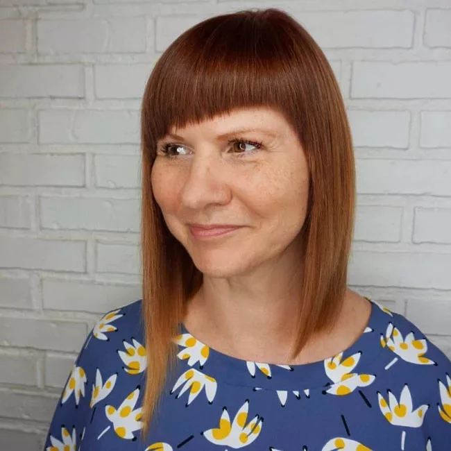 Прямой срез с идеально ровной челкой подойдет исключительно для прямых волос. В противном случае ежедневная укладка будет отнимать слишком много сил, времени да и нервов в том числе.