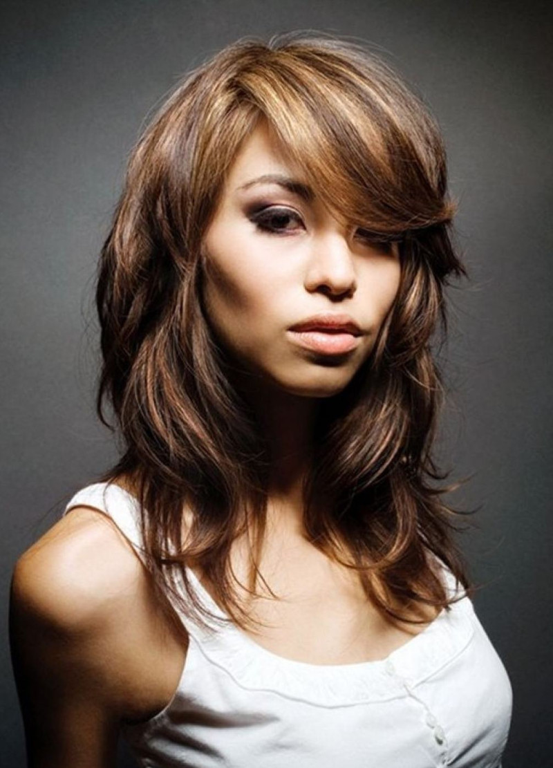 Сейчас в моде несложные, но многослойные прически средней длины. Выпрямленные волосы, ровный срез и пробор набок — хит этого сезона. Подобные стрижки рекомендовано носить на среднюю длину, укладывая волосы легкими волнами. Обладательницы тонких волос все чаще отдают предпочтение многослойной стрижке и косой длинной челке. Такие варианты придают волосам визуальный объем и пышность. Подчеркнуть прическу помогает профессионально окрашивание, например, балаяж, которое способно придать образу особую изюминку выделить правильные акценты в образе.