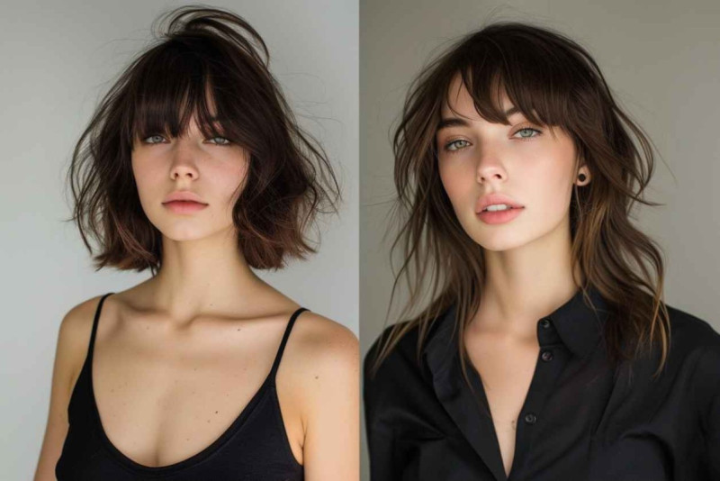 Боб-каре – это модное и стильное решение для тех, кто стремится сохранить длину волос, но при этом желает добавить стрижке легкости и движения. Дополнив такую стрижку челкой-шторкой, вы получите действительно изысканный и современный образ. Эта челка идеально дополняет удлиненное каре, делая акцент на глазах и мягко обрамляя лицо. Данный вариант прически подходит практически для всех форм лица, но особенно выигрышно будет смотреться на овальных и продолговатых. Стрижка в целом идеально сочетается как с гладкой укладкой, так и с легкими небрежными волнами, что позволяет создать как строгий деловой образ, так и расслабленный повседневный.