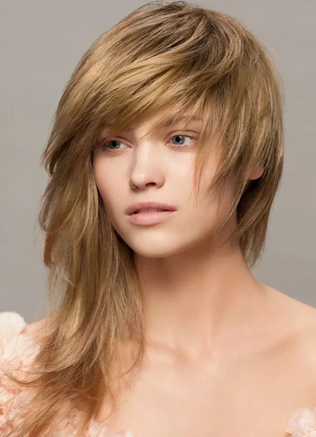 Стрижки с челкой на длинные волосы с рваными концами уже давно не теряют своей актуальности. Их особенность в том, что срез локонов не имеет четкой формы и смотрится более естественно, чем ровные концы. Для их выполнения используется бритва или филировочные ножницы. Лучше всего такие стрижки подходят девушкам с плотными волосами.