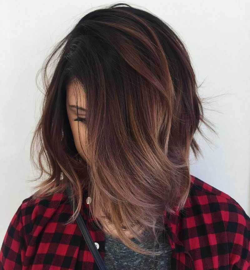 Актуально наносить на темные волосы каштановые оттенки. Они несут аристократическую утонченность и подходят к любому типу внешности. Лиловый шоколад и бургунди – лидирующие оттенки грядущего сезона. Они делают шевелюру визуально объемнее.