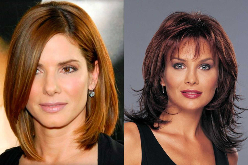 Из стрижек и причесок будут уместны объемные, волнистые и кудрявые. Каскад, асимметрия и многоуровневые прекрасно подкорректируют ситуацию, но при этом помогут сохранить длину волос. В случае с асимметрией длина волос может быть частично сохранена, но именно данный вариант лучше других позволит играть с овалом лица, удлиняя или закругляя его.