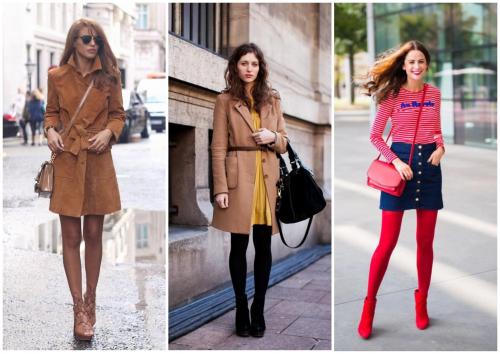 Классический вариант – бежевые туфли и телесные колготки – легко сделают ваши ноги длиннее. Равно как и черная обувь с колготками такого же цвета.