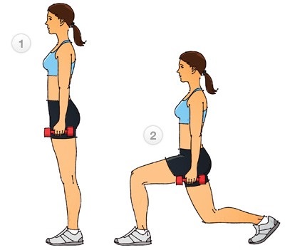 - Возвратить ногу в исходное положение, сделать выпад второй ногой.