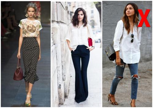 Не стоит делать четкие границы в фигуре. Белый верх, черный низ делит тело пополам, сокращая длину каждой части. При выборе одежды отдайте предпочтение не контрастным, а гармонирующим оттенкам. Или можете поступить проще – надеть комбинезон . Он создает одну прямую линию, делает рост выше, а ноги – бесконечными.