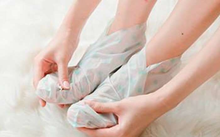 - Оберни ступни пищевой пленкой и оставь на 10 минут;