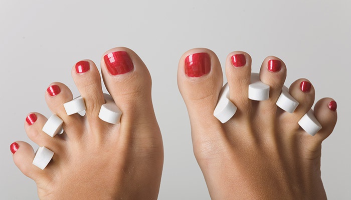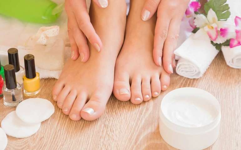 После того, как вы счистили остатки омертвевшей кожи, стопы и пальцы следует тщательно увлажнить. Можно использовать кремы и лосьоны на масляной основе, питательный или увлажняющий крем. Массажными движениями распределите выбранное средство по всей поверхности стопы, и дождитесь полного впитывания. После этого, можно будет нанести на ногти декоративный лак или гель-лак.