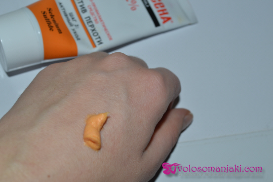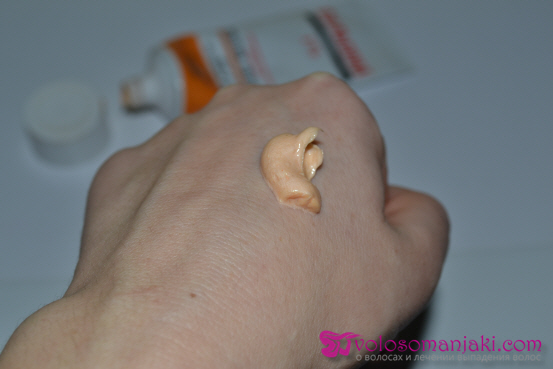 Паста наносится очень просто. Она представляет собой достаточно плотную густую кремообразную массу желто-оранжевого оттенка.