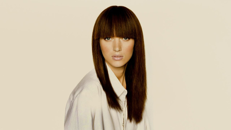 Прямую челку сочетают как с распущенными, так и с собранными волосами. Если желаете заплести косу, остановитесь на самом простом варианте. Фантазийные и сложные плетения сделают образ перегруженным. Для собранных вверх волос самой красивой моделью станут воздушные локоны и мелкие завитки. Сочетание гладкой челки и кудрявой шевелюры выглядит очень интересно. Впрочем, элегантная ракушка станет не менее удачным выбором. Что касается наряда, остановитесь на спокойном и сдержанном платье без оборок или кружев.
