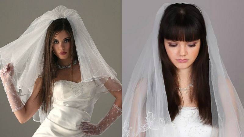 - Простая однослойная фата – сложная укладка с прямой челкой;