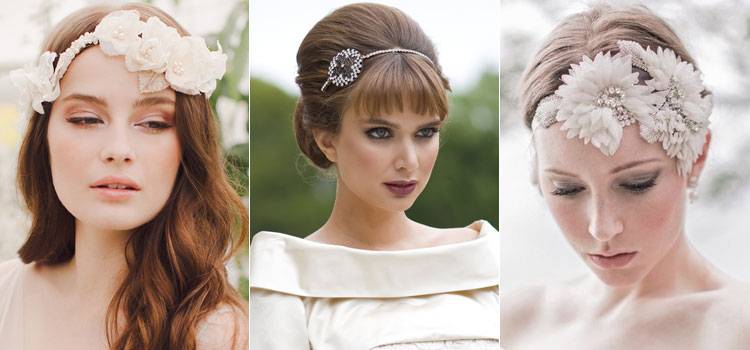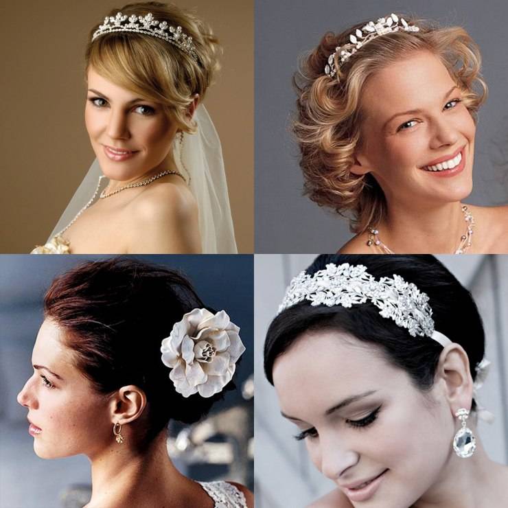Короткие волосы обыгрываются интересными заколками, обручами, диадемами, фатой.