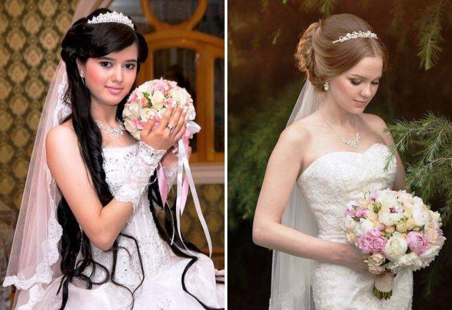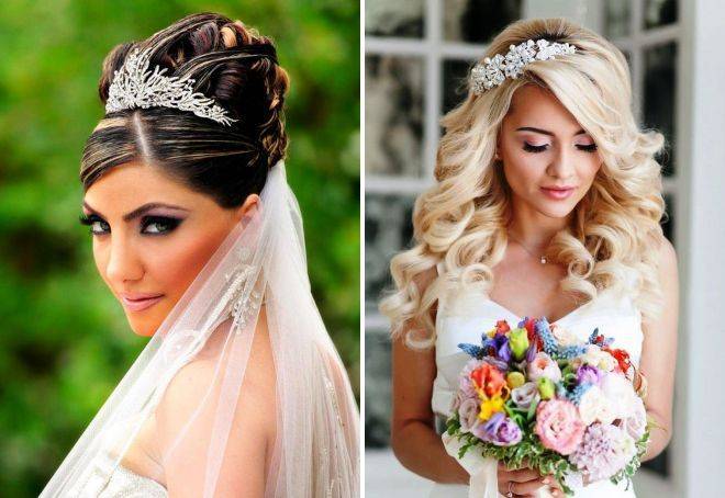 Прежде всего, стоит посмотреть различные фото прически с диадемой на свадьбу, чтобы понять, будет ли смотреться уместно данный аксессуар в вашем образе или же нет.