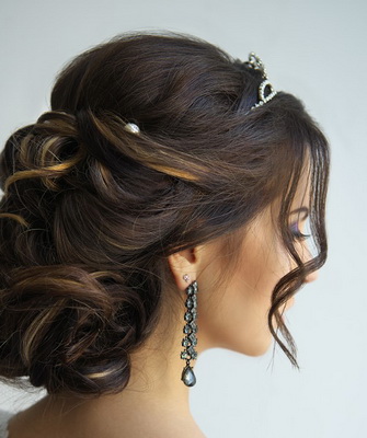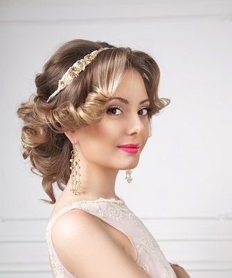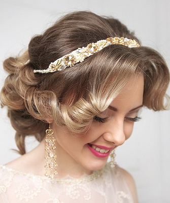 - Если в аксессуаре присутствуют камни, они должны быть некрупного размера и как бы утопать в прическе (подойдет любая высокая укладка).