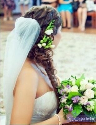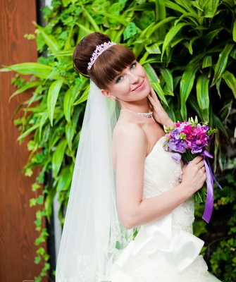 Прическа должна быть обязательным дополнением свадебного наряда и фаты. Никаких противоречий не должно быть вообще.