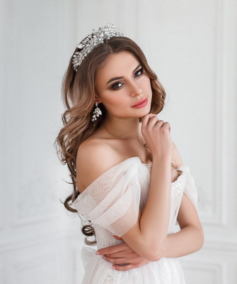 - Для пышного платья подойдет эффектная и богато декорированная диадема, для облегающего – утонченная и скромная;