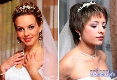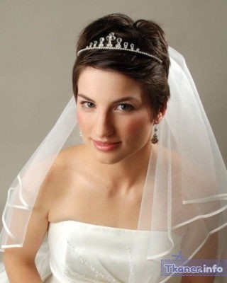 Несмотря на то что причесок для обладательниц коротких волос не так много, подобрать подходящую вполне реально. Так, женщина может выбрать укладку на стрижку «боб», а витиеватая диадема и ненавязчивая фата станут прекрасным дополнением.