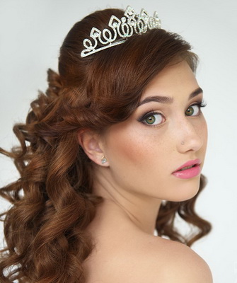 Любительницы плетений наверняка попробуют заплести широкую косу, украсив голову простой по дизайну диадемой. Если хочется выглядеть необычно, то присмотритесь к прическе под названием «Мальвина». Для этого верхние пряди волос собираются сзади, там же крепят и диадему. Нижнюю часть оставляют распущенной.