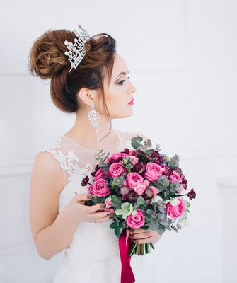 Нежная свадебная прическа с диадемой, представляющая собой высокий пучок, лучше всего подходит к изысканным и утонченным платьям, выполненным в классическом стиле. Она смотрится сдержанно и лаконично, но при этом не делает образ слишком простым, а придает ему яркие краски и оригинальность. Собранная свадебная прическа с диадемой-тиарой считается идеальным вариантом для женщины, которая вступает в брак не в первый раз.