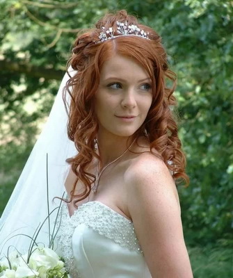 - Диадемы подружек могут быть украшены некрупными жемчужинами, но последние должны лишь слегка выбиваться из-под локонов (спиралевидных, зигзагообразных, небрежных).