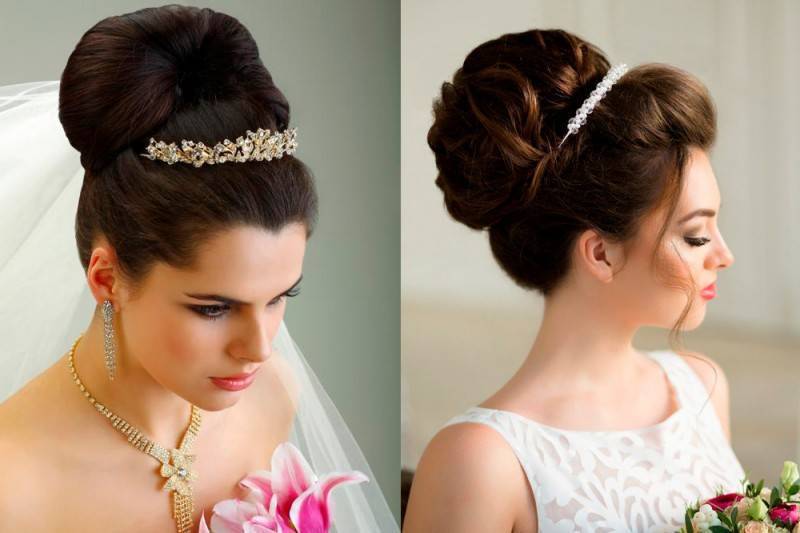 Отказать от пышных объемных творений придется дамам с круглым лицом (для полных девушек они не подходят). Можно остановить свой выбор на гладких с различными украшениями (диадемой или короной).