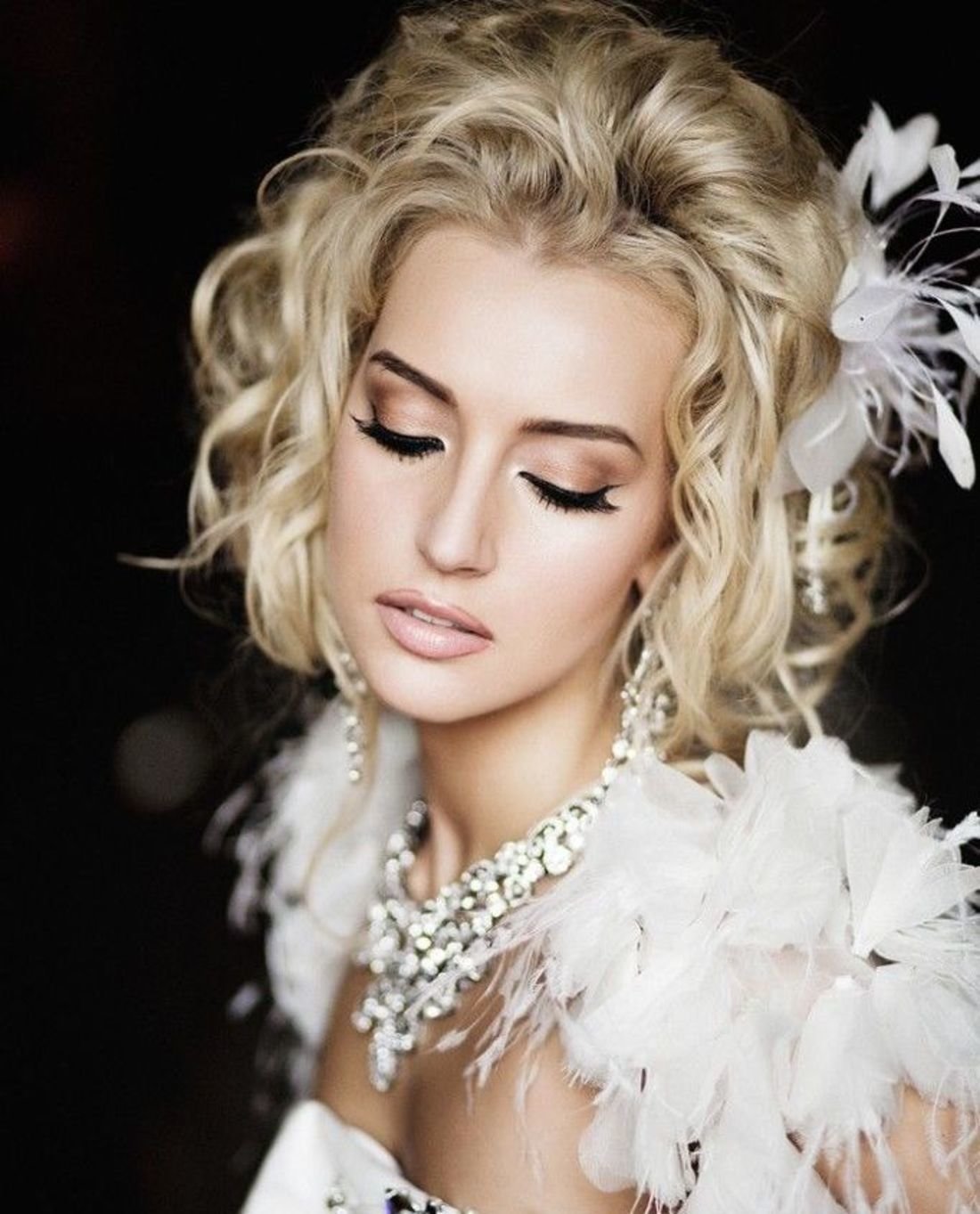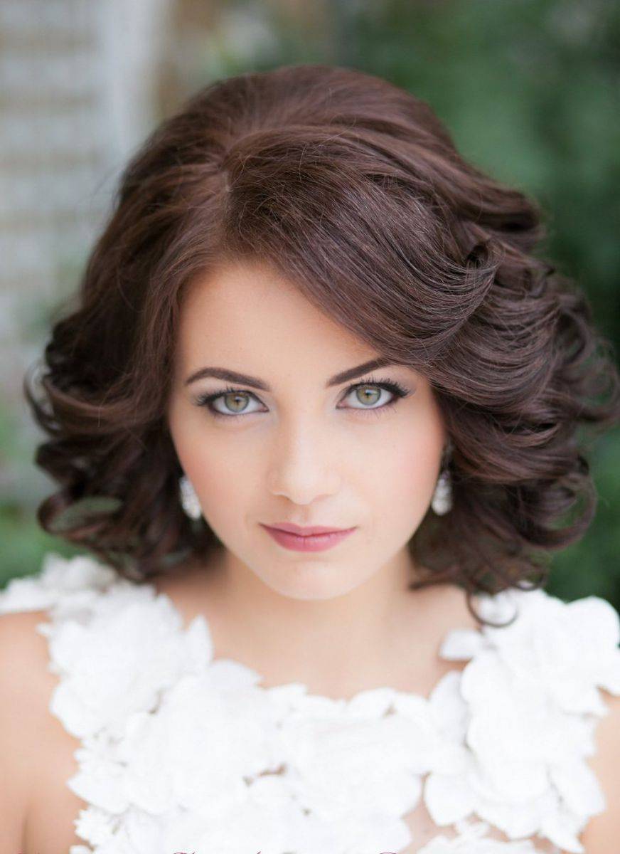 Для круглого лица хорошо подходят асимметричные варианты, например, собранные, на одну сторону кудри. Такой вариант предполагает наличие аксессуаров в виде цветов или украшения с камнями.