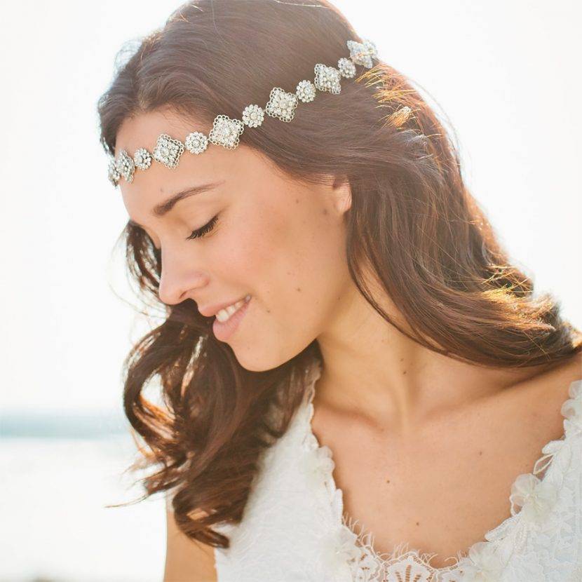 Часто в качестве украшения для прически невесты используют ободки различных форм и размеров. Если свадебный образ предполагает греческую прическу, то без данного аксессуара не обойтись. Кроме того, можно украсить ободком любую другую прическу: к высоким укладкам следует подбирать более скромный аксессуар, а с распущенными волосами ободок может стать главным акцентом. Этот аксессуар может иметь различный декор – стразы, бисер, цветы, россыпь камней.