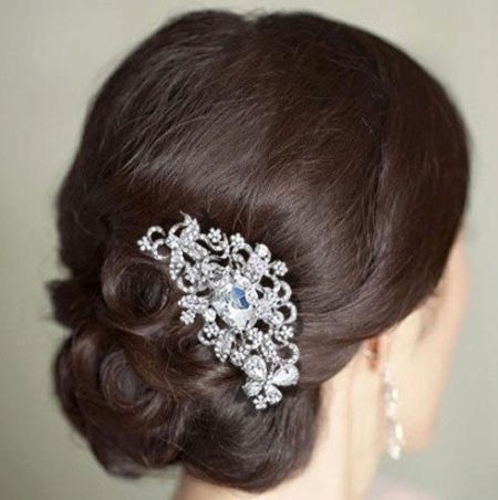 Красивые заколки с зубчиками как у расчески довольно часто используют для украшения свадебных причесок. Обильно украшенный декоративными деталями, такой аксессуар станет отличным дополнением свадебного образа. Это украшение можно закрепить спереди в качестве диадемы, также неплохо заколка-гребень украсит собранные сзади локоны или поможет закрепить фату.
