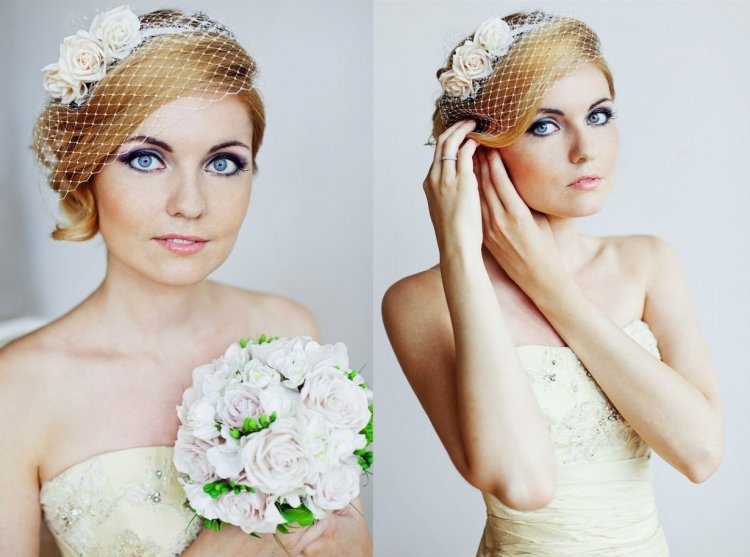 Некоторые девушки даже на собственной свадьбе хотят быть загадочными, и это правильно! Вуаль или ее сестра – вуалетка – достойный выход из положения. Она может быть выполненной из сетки или из тюля и заканчиваться там, где кончаются губы. Она может крепиться к шляпке или к прическе. Стиль платья и обуви – винтажный. Допустимы длинные перчатки на руках.