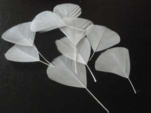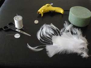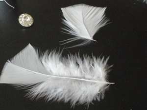 - Приобрести в специализированном магазине для рукоделия несколько крупных пышных и несколько тонких перьев белого цвета.