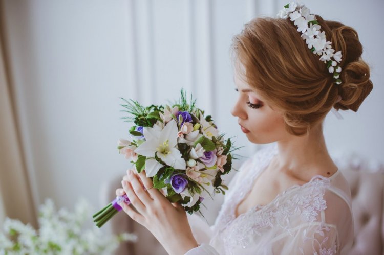 Хотите добиться идеальной гармонии во всех деталях вашего свадебного образа? Тогда проследите за тем, чтобы цветы в прическе и букете сочетались друг с другом, а также не диссонировали с платьем и другими аксессуарами по цвету.